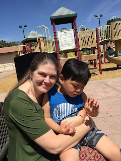 Katie participated in one of the races. All 3 kids had fun playing on the playground, and throwing balls and messing with the lassos. I got to see Hannah send a basketball soaring through the hoop! I was so proud of her.